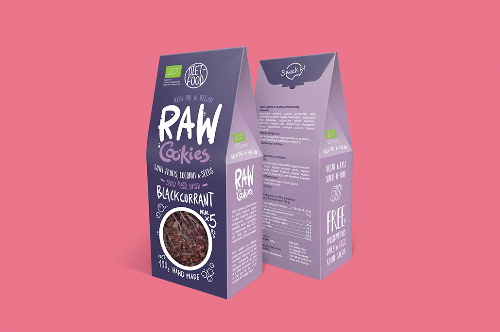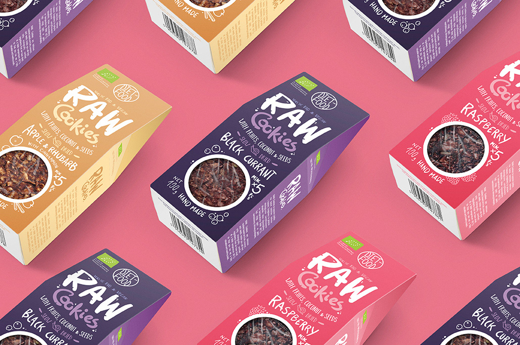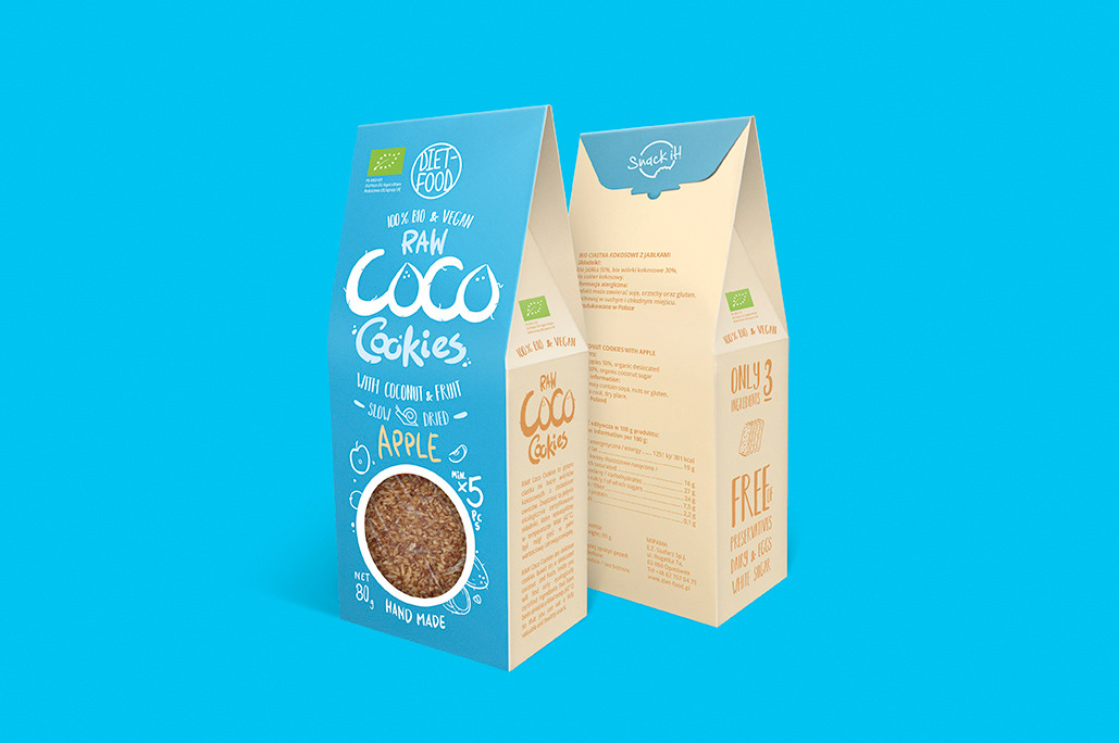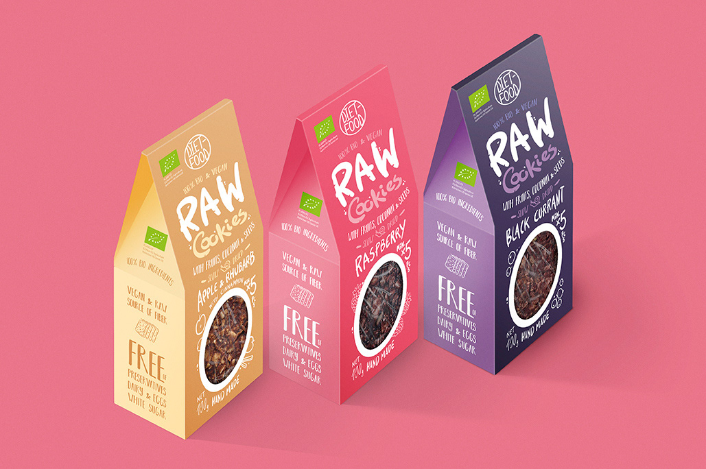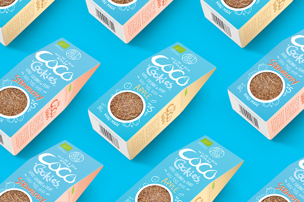 Organic cookies and crackers packaging with hand-drawn fonts.