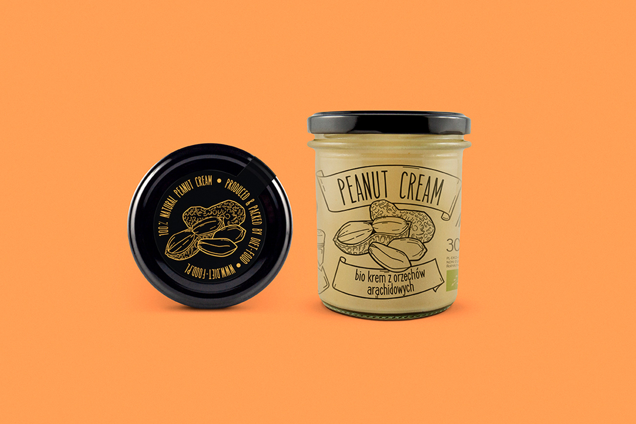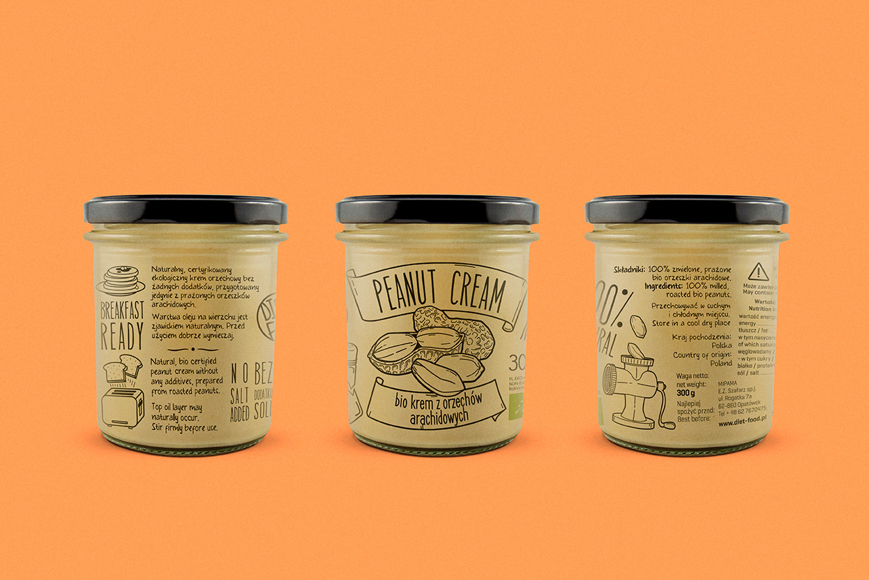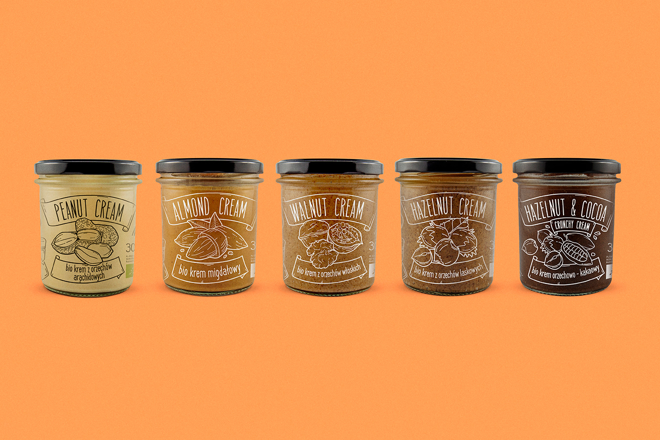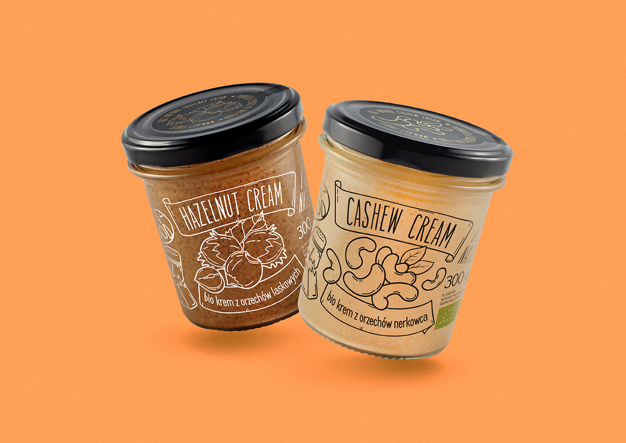 A series of labels for natural nut creams.